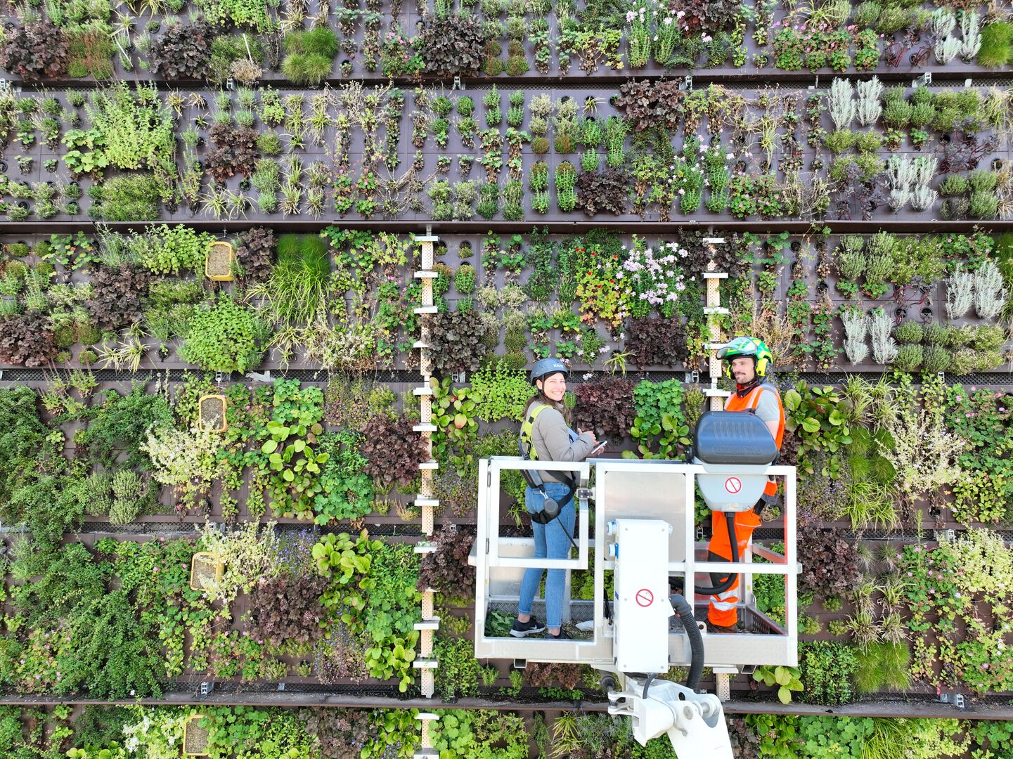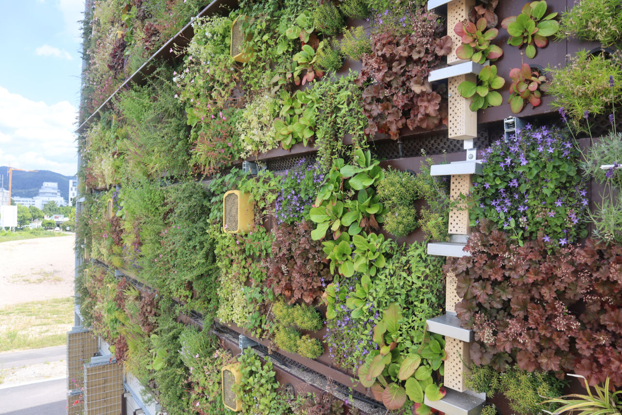 Mit Blick auf den herrschenden Platzmangel in hochurbanen Gebieten stehen verstärkt vertikale Fassadenbegrünungen im Fokus der Planer. Wurden bisher dafür nahezu ausschließlich nicht blühende, grüne Wände gestaltet, sind am HIP Parkhaus in Heidelberg innovative Begrünungssysteme mit integrierten (Bienen)nisthabitaten umgesetzt worden. Diese vertikale Fläche wird seit 2024 mehrmals im Jahr auf ihre Attraktivität für Bestäuber hin bonitiert und evaluiert. Für die Zukunft ist geplant, ein weiterer Schwerpunkt auf die Vernetzungsfunktion vertikaler Blühsysteme zu legen. Im Mittelpunkt steht die Frage, ob Wildbienenpopulationen Fassadenbegrünungen als Trittsteine von der Fläche hin zu Dachbegrünungssystemen nutzen können.