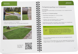 Darüberhinaus sind QR-Codes enthalten, mit denen sich Lehrvideos zu Rasenansaat, Verlegen von Fertigrasen und Rasenerneuerung aufrufen