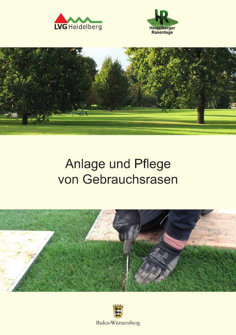 Die Staatliche Lehr- und Versuchsanstalt für Gartenbau Heidelberg (LVG) hat gemeinsam mit dem „Verein Heidelberger Rasentage – Verein zur Förderung moderner Rasenpflege e.V.“ eine Broschüre erarbeitet, die jeden Interessierten über die fachgerechte Anlage und Pflege von Gebrauchsrasen informiert.